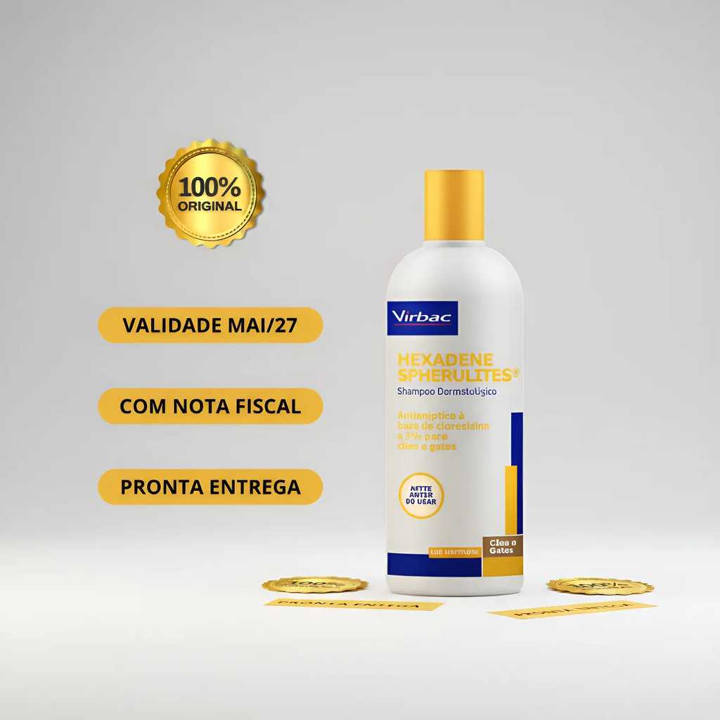 Kit Dermatológico para Cães e Gatos Shampoo Hexadene 250ml + Hidrapet Creme Pós-Banho 100g O kit ideal para cuidar da saúde da pele e da pelagem do seu pet, unindo limpeza terapêutica com hidratação profunda. A combinação do Shampoo Hexadene com o Hidrapet Creme Pós-banho oferece um tratamento completo, auxiliando no controle de infecções e promovendo maciez, brilho e conforto para cães e gatos. O Shampoo Hexadene possui clorexidina a 3%, reconhecida por sua potente ação antisséptica contra bactérias e fungos, incluindo Malassezia. Sua exclusiva tecnologia Spherulites promove liberação gradual do ativo, garantindo ação prolongada e eficaz, auxiliando no tratamento de piodermites superficiais, infecções fúngicas e como suporte em quadros mais complexos. Já o Hidrapet Creme Pós-banho complementa o cuidado, proporcionando hidratação intensa da pele e dos pelos. Sua fórmula com óleo de macadâmia, ceramidas e silicones ajuda a manter a pele saudável, macia e protegida, além de deixar a pelagem mais brilhante, resistente e fácil de desembaraçar. INDICAÇÃO Indicado para cães e gatos que necessitam de cuidados dermatológicos, controle de infecções de pele e hidratação da pelagem. COMPOSIÇÃO PRINCIPAL Hexadene: Clorexidina 3% com tecnologia Spherulites Hidrapet: Óleo de macadâmia, ceramidas, silicones e água purificada BENEFÍCIOS DO KIT Auxilia no controle de infecções bacterianas e fúngicas Ação antisséptica eficaz e prolongada Hidrata profundamente a pele e pelagem Reduz ressecamento e desconfortos cutâneos Proporciona brilho, maciez e facilidade ao desembaraçar Melhora o aspecto geral da pele e dos pelos MODO DE USO Shampoo Hexadene: Aplicar sobre o animal com os pelos molhados, massagear até formar espuma, enxaguar e repetir a aplicação deixando agir por cerca de 10 minutos antes do enxágue final. Utilizar conforme orientação do médico veterinário. Hidrapet Creme: Após o banho, retirar o excesso de água, aplicar o produto em todo o corpo, massagear e deixar secar naturalmente. Não enxaguar. DIFERENCIAIS Tratamento completo em um único kit Tecnologia de liberação prolongada (Spherulites) Combinação de limpeza terapêutica + hidratação intensa Indicado para uso frequente conforme orientação profissional PRECAUÇÕES Uso tópico em cães e gatos Evitar contato com os olhos Em caso de sensibilidade, suspender o uso e procurar orientação veterinária Produto de uso veterinário. Recomenda-se sempre a orientação de um médico veterinário para o uso adequado conforme as necessidades do seu pet.