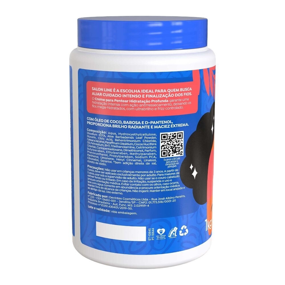 Um kit com três Cremes Para Pentear Salon Line: Super Volumão, Hidratação Profunda e Brilho Umidificado para cabelos hidratados, cachos soltos e leves, brilhantes e protegidos contra os raios UV. INDICAÇÕES Para quais tipos de cabelo? Cabelos ondulados, cabelos cacheados e cabelos crespos. Qual a indicação? Cabelos ressecados, cabelos sem brilho e com frizz. Pode usar a partir de quantos anos? O Creme Para Pentear Hidratação Profunda pode ser usado a partir de 03 anos. O Super Volumão e o Brilho Umidificado a partir de 12 anos. ATIVOS Quais os principais ativos? Cada produto do Kit Hidratados e Volumosos possui ativos que definem e cuidam dos fios: Creme para Pentear Super Volumão Óleo de semente de melancia: rico em vitaminas A, C e B6 e nutrientes, garante hidratação e brilho. Sua textura leve auxilia na formatação dos cachos sem pesar. D-pantenol: proporciona hidratação, evita o ressecamento, reduz as pontas duplas e promove brilho aos fios. Óleo de argan: poderoso hidratante e antioxidante natural, retarda o envelhecimento e restaura a fibra capilar, além de fortalecer e nutrir o couro cabeludo. Creme Para Pentear Hidratação Profunda Óleo de coco: rico em vitaminas e ácidos graxos, fortalece os fios e proporciona brilho e maciez. Babosa: também conhecido como Aloe vera, possui vitaminas e sais minerais, garantindo hidratação e couro cabeludo saudável. D-pantenol: além de proteger o cabelo contra os danos externos, fortalece o couro cabeludo e garante fios hidratados, brilhantes e ultramacios. Creme Para Pentear Brilho Umidificado Óleo de coco: rico em vitaminas e ácidos graxos, fortalece os fios e proporciona brilho e maciez. Óleo de amla: com vitamina C, garante fios nutridos, tratados profundamente, rejuvenescidos e saudáveis. Manteiga de karité: um dos ativos mais antigos e mais utilizados para nutrir os fios, garante hidratação extrema, brilho e força para o cabelo crescer. MODO DE USO Qual a melhor forma de usar? Aplique qualquer um dos Cremes Para Pentear Salon Line no cabelo úmido e espalhe mecha a mecha, do comprimento às pontas. Desembarace com um pente de dentes largos e, depois, amasse das pontas até a raiz. Dicas de uso Você pode testar diversas formas de finalizar os cachos usando os Cremes Para Pentear Super Volumão, Hidratação Profunda e Brilho Umidificado. Veja como fazer a fitagem: Passo 1) Aplique o seu Creme para Pentear Salon Line e deslize os dedos como se fossem um pente de cabelo, formando fitas. Passo 2) Amasse as mechas de baixo para cima quantas vezes quiser. Passo 3) Para dar volume, jogue a cabeça para frente do corpo, apertando os fios no sentido das pontas à raiz. Se quiser, use o difusor. Salon Line recomenda Experimente usar os Cremes para Pentear no day after: misture em seu borrifador água e o creme. Aplique sobre os fios, do comprimento às pontas. Caso queira controlar o volume, aplique também próximo à raiz. CARACTERÍSTICAS É produto vegano? O Creme Para Pentear Hidratação Profunda e Brilho Umidificado são veganos. O Super Volumão não é. É liberado? Os produtos do Kit Hidratados e Volumosos não são liberados.
