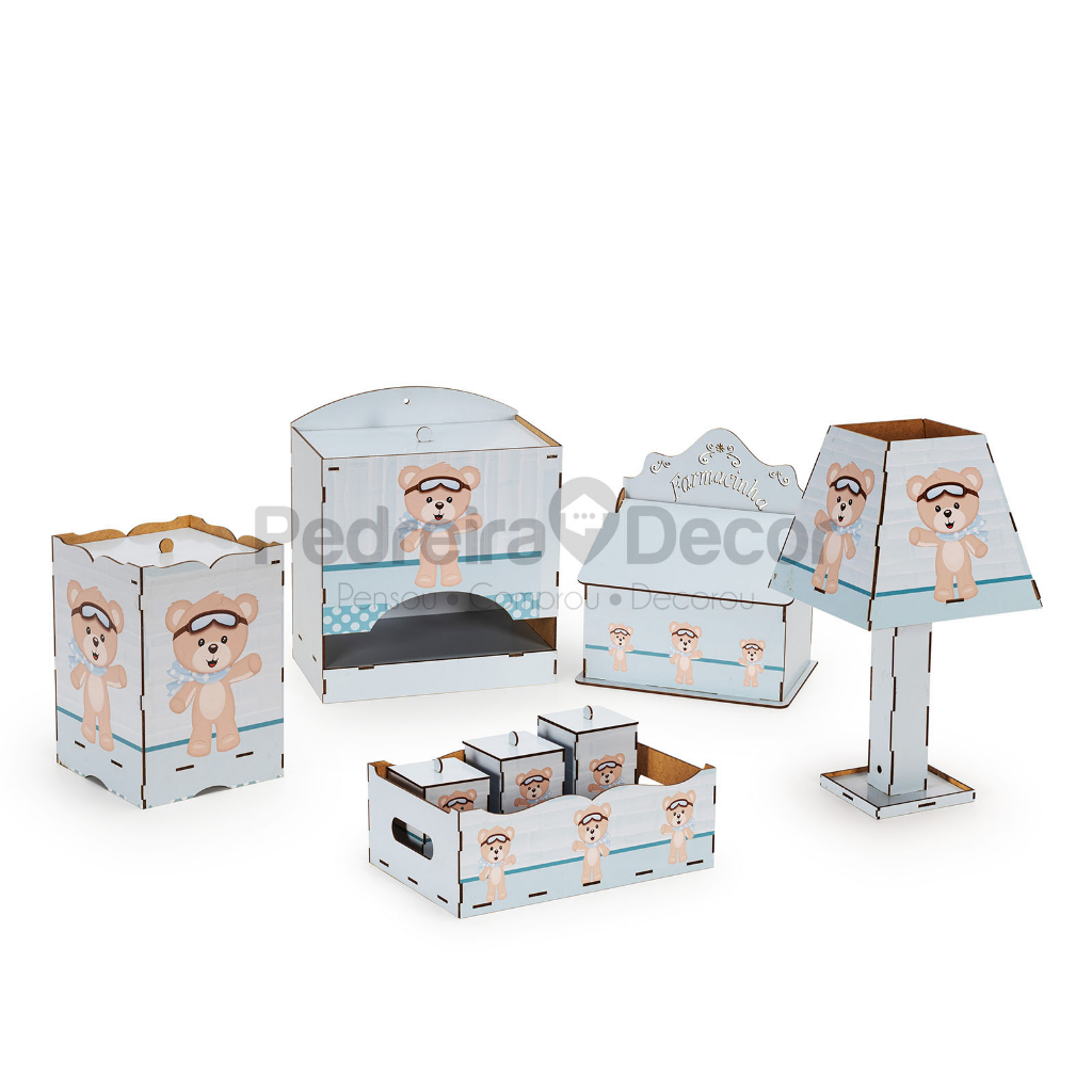 Kit Higiene adesivado menino Mdf Mult Uso Pronta Entrega
