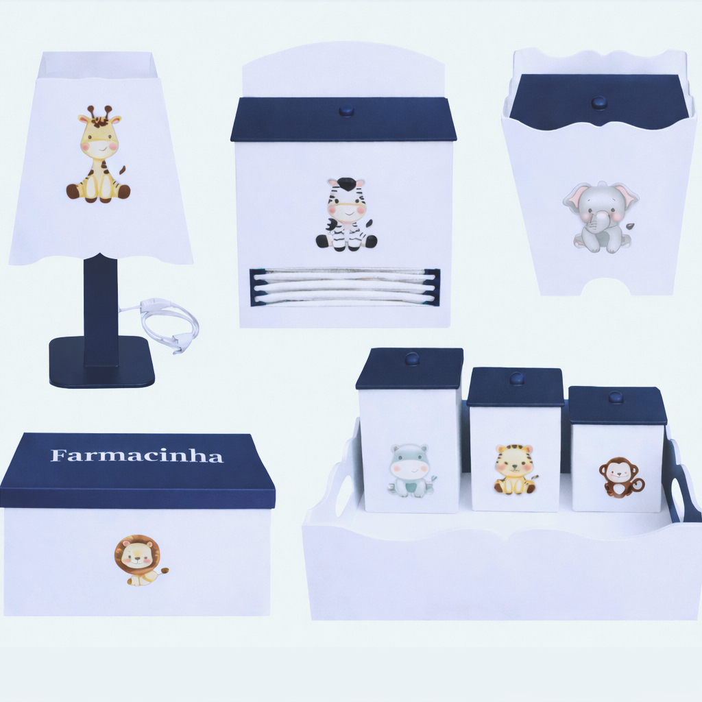 Kit Higiene Bebê Azul Marinho Safari Completo Safari Baby