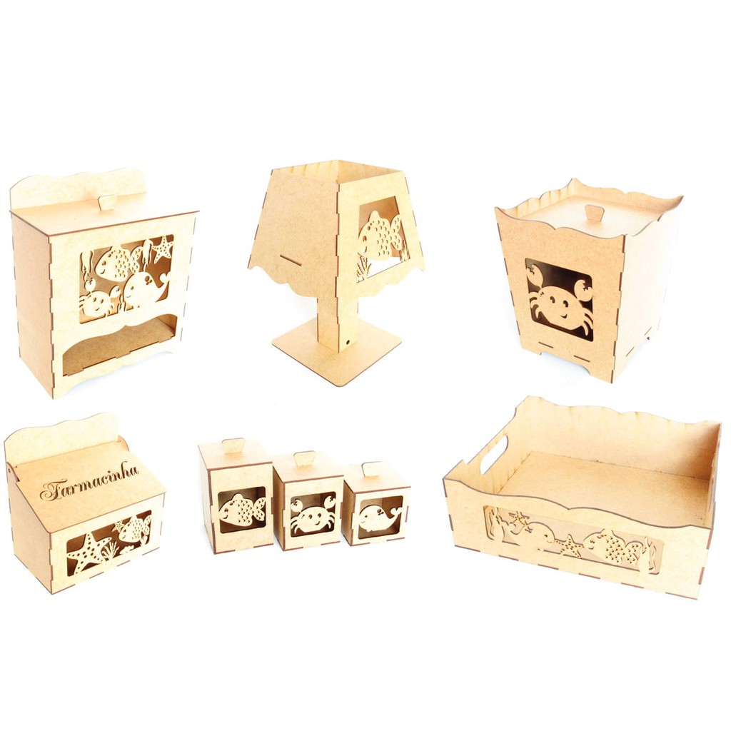 Kit Higiene Bebê fundo do mar em mdf cru 8 peças quartinho