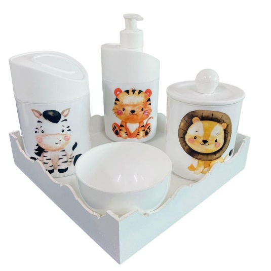 | Kit Higiene Bebê Leão, zebra, tigre c/Bandeja Quadrada Branca este produto | R$ 69,66 | 7% | 4.8/5 | 2 |