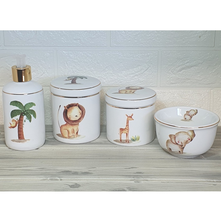 Kit Higiene Bebe Porcelana Safari Friso Ouro Conjunto Completo Organizador Enxoval Quarto Infantil