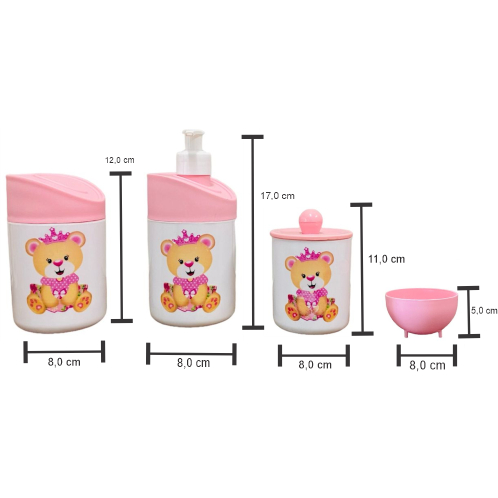 | Kit Higiene Bebê Ursinha Princesa c/bandeja quadrada crua este produto | R$ 55,71 | 7% | 4.9/5 | 3 |