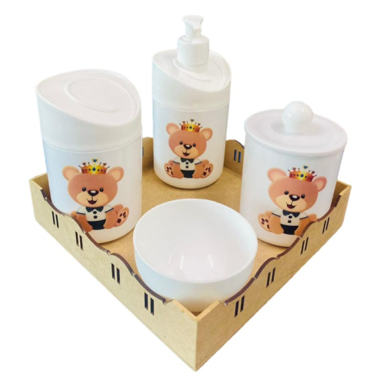 Kit Higiene Bebê Ursinho Príncipe c/Bandeja Quadrada