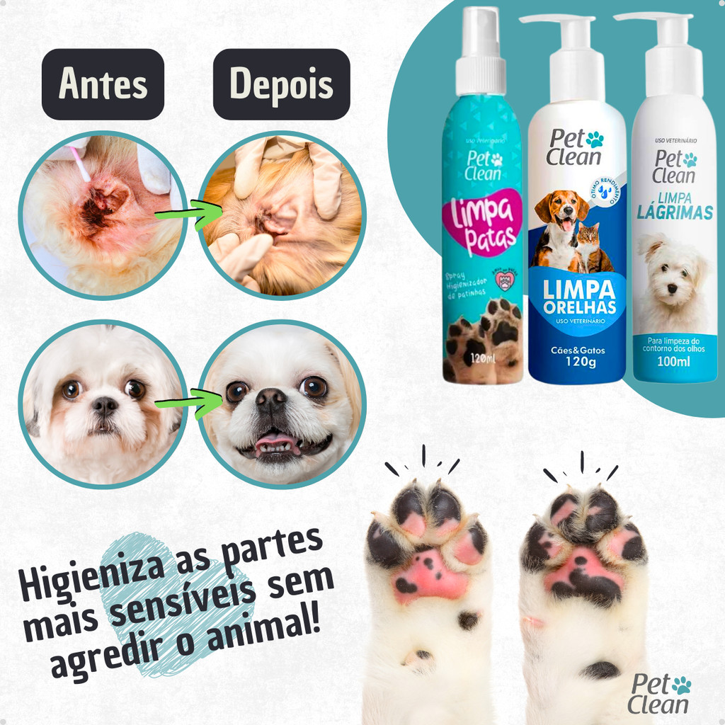 Kit Higiene Bucal e Higienização Banho Completo para Cães e Gatos Filhotes Shampoos - Pet Clean