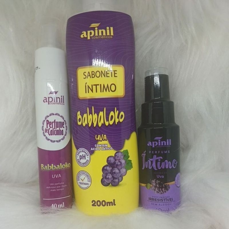 Kit Higiene Íntima Feminina – Sabonete + Perfume Íntimo + Perfume de Calcinha | Apinil 🛍️ Descrição: Cuide da sua intimidade com um toque irresistível de uva ou morango! Este kit completo da Apinil Cosméticos é ideal para quem busca frescor, cuidado e perfume duradouro em todas as ocasiões. Com ativos naturais e fórmula suave, os produtos foram desenvolvidos especialmente para manter o equilíbrio do pH e proporcionar bem-estar durante todo o dia. ✨ O kit contém: 1️⃣ Sabonete Íntimo (200ml) - Com extratos de Barbatimão, Aroeira e Malva - Equilíbrio do pH - Dermatologicamente testado - Sensação de frescor e limpeza 2️⃣ Perfume Íntimo (40ml) - Perfumação irresistível - Sem álcool - Ideal para o dia a dia 3️⃣ Perfume de Calcinha (40ml) - Perfume delicado e marcante - Longa duração - Para se sentir cheirosa por muito mais tempo :