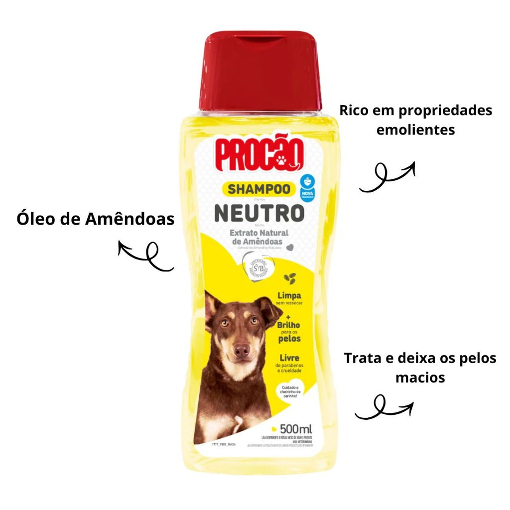 Bem-vindo(a) à Zine Store. SOBRE O VENDEDOR: 100% Produtos Originais e todas as Vendas com Nota Fiscal para Pessoa Física ou Jurídica. Somos DISTRIBUIDORES E REPRESENTANTES AUTORIZADOS. Kit Higiene Procão é composto por 1x Shampoo Neutro de 500ml, 1x Condicionador e uma escovinha. O Shampoo Neutro com Óleo de Amêndoas, é um produto rico em propriedades emolientes. Além de limpar, o Shampoo Neutro Procão, trata e deixa os pelos macios. O Condicionador Procão foi desenvolvida para cães e gatos de todas as raças, cores e comprimentos de cabelo. Desembale os cabelos por meio de emolientes ativos que proporcionam mais maciez e maleabilidade, deixando-os bonitos e saudáveis. *ESCOVA DE PELO A COR É SORTIDA.* Atenção: - Produto a pronta entrega; - Envio Imediato;