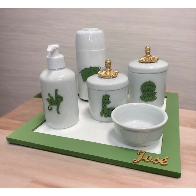 🌟 Já pensou em ter o quarto dos sonhos para o seu bebê? No ATELIE AMANDA JARDIM, oferecemos o melhor em decoração para esse cantinho tão especial da casa, celebrando o momento sonhado da chegada de um filho! 💖👶 Trabalhamos com peças de primeira linha, decoradas artesanalmente, tornando cada item único e feito especialmente para o seu pedido. 🎨✨ KIT HIGIENE PORCELANA CONTÉM: 1 BANDEJA MDF 30x30cm (BRANCA) com o NOME do bebê (não acompanha espelho e pezinho) 🛁 1 PORTA TRECOS COM TAMPA PORCELANA G (10cm altura x 9cm diâmetro) 🏺 1 PORTA TRECOS COM TAMPA PORCELANA M (8cm altura x 9cm diâmetro) 🏺 1 MOLHADEIRA PORCELANA PEQUENA (4,5cm altura x 9cm diâmetro) 💧 1 SABONETEIRA LÍQUIDA PORCELANA (15cm altura) 🧴 1 GARRAFA TÉRMICA OPCIONAL: 250ml de rosca ou 500ml pump (escolha no momento da compra) 🍼 DETALHES DO PRODUTO: Apliques Safari em MDF Puxadores em resina Porcelanas na cor Branco Gelo INSTRUÇÕES IMPORTANTES: Após a compra, envie imediatamente o nome do bebê pelo chat ao vendedor 💬 Escolha a cor no momento da compra 🎨 Prazo de confecção: Até 7 dias ⏳ DÚVIDAS? Entre em contato antes da compra pelo chat ao vendedor. Atendemos durante o horário comercial e garantimos que você será respondido com atenção. 💬😊 Fique por dentro: Simulação de compra: Para saber a data de chegada, faça uma simulação de compra para seu CEP no site. O prazo será calculado automaticamente junto com o prazo de confecção. 📦 Produto artesanal: O tempo de preparo é necessário devido ao processo artesanal. Se ficar pronto antes, encaminharemos à transportadora. 🚚 Observação: 📝 Kit Higiene é um item indispensável no enxoval do bebê, pois ajuda no armazenamento dos itens essenciais durante a troca. 👶🛁 Produto com garantia de fabricação! 🔒 Espero que a descrição esteja clara e envolvente agora! Se precisar de algo mais, é só falar! 😊