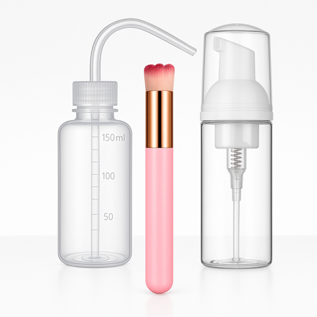 Kit Higienização para Extensão de Cílios – Pump Espumador e Pisseta + Pincel de Limpeza
