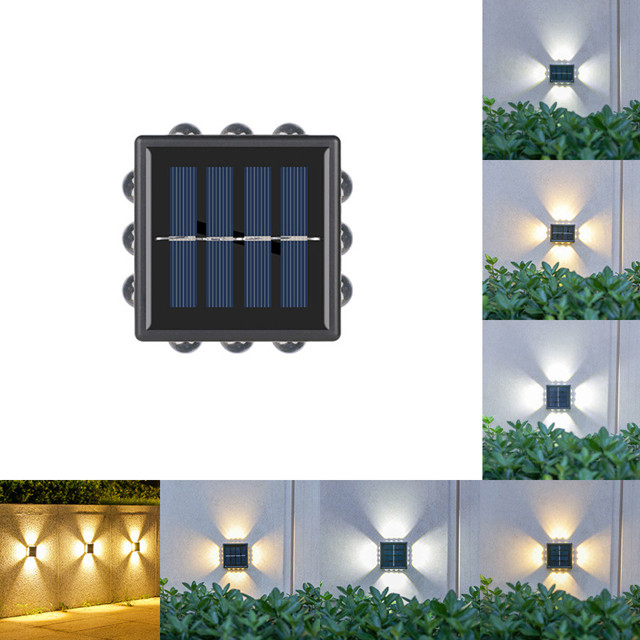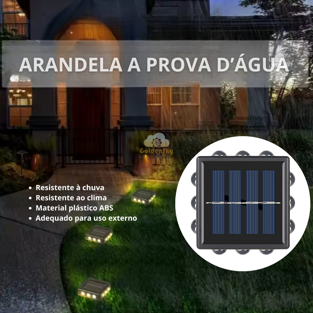 Kit Iluminação Arandela Solar 4 Focos Parede Slim 12 Fachos Led Externa