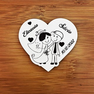 Kit Ímãs Coração com Casal MDF Personalizados – Lembrancinha para Casamento