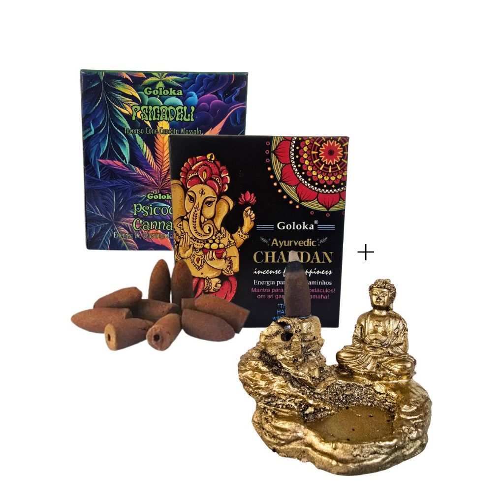 Kit Incenso Goloka Cone Efeito Cascata e Incensário Cascata Escolha Suas Fragâncias