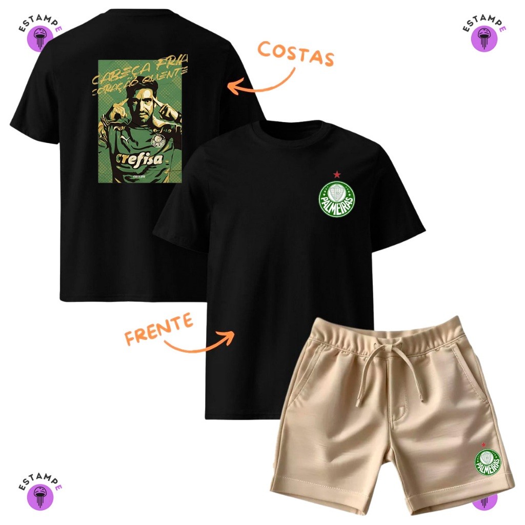 Kit Infantil 2 peças Sendo 1 Camiseta e 1 Bermuda Moletinho Abel Ferreira Palmeiras Verdão Avante Palestra Infantil