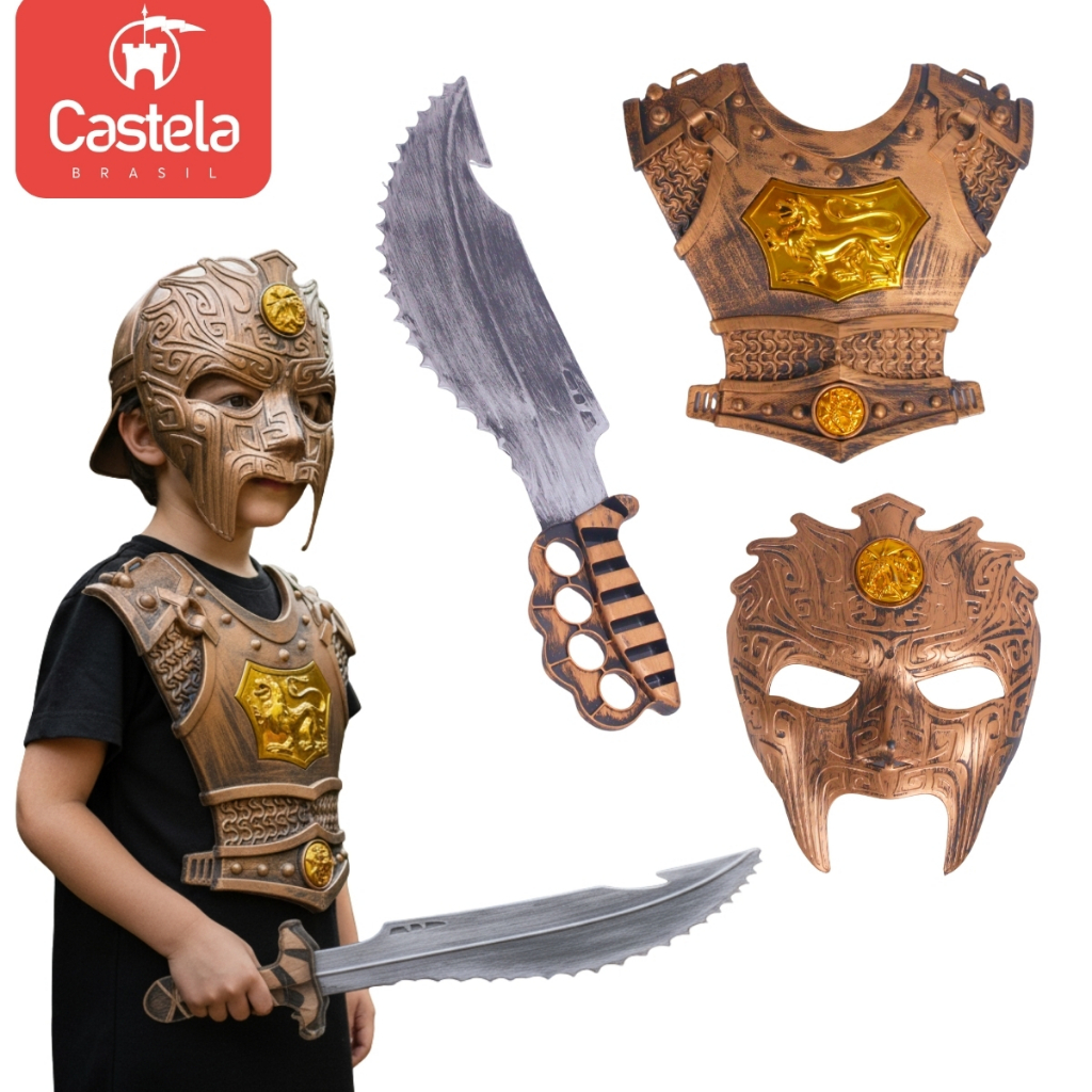 Kit Infantil Armadura Medieval Espada Escudo Gladiador - Castela