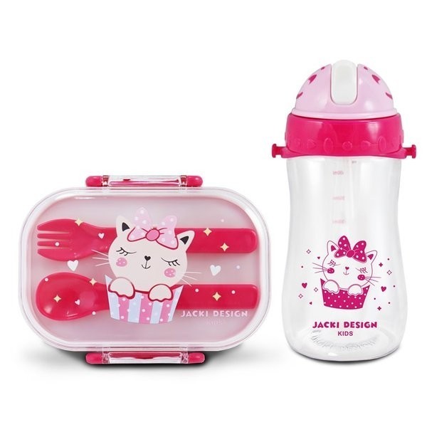 Kit infantil Fofo Jacki Design Conjunto Pote p/ lanche de 2 Andares e Garrafa Infantil 460ml desenho