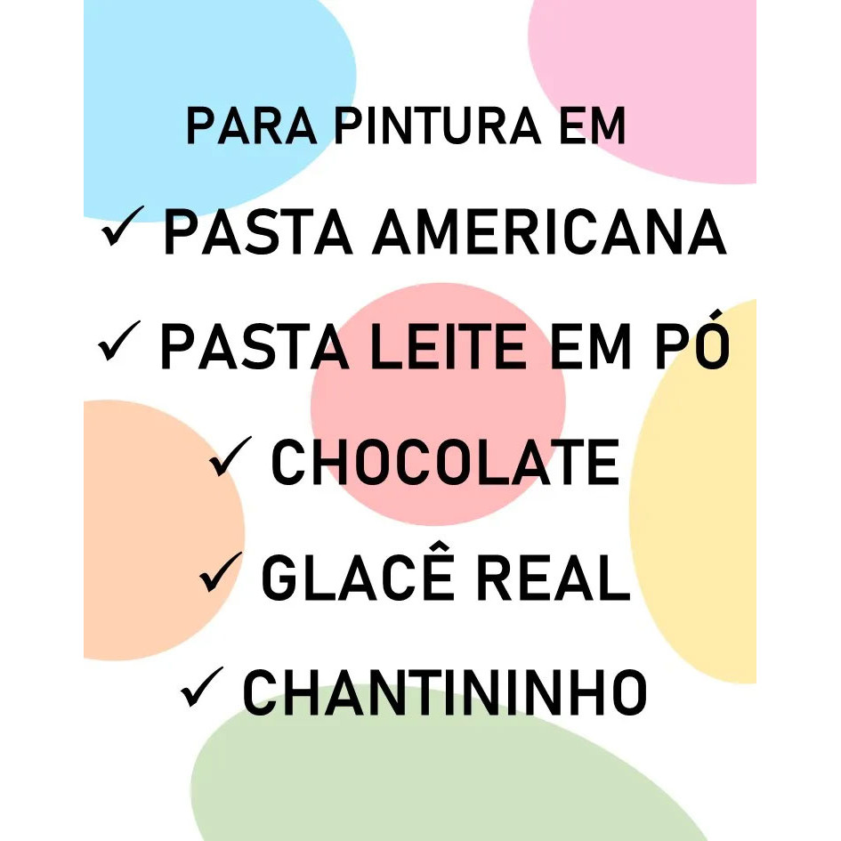 A INKSUGAR não é corante, é TINTA! A TINTA DA CONFEITARIA! Ela chegou para te ajudar a deixar seus trabalhos em confeitaria ainda mais bonitos, caprichando nos detalhes! A base de Álcool de Cereais, é indicada para Pasta Americana, Leite Ninho, Ganache, Chantininho, Buttercream, Chantily, Chocolate, Glacê Real, Macarons, Suspiros, Biscoitos e tudo mais que sua criatividade alcançar. PRINCIPAIS CARACTERÍSTICAS: # Atóxica, sem cheiro ou gosto, não altera o sabor final do seu produto. # Secagem rápida (quase instantânea) # Muito econômica, você não perde nada! Se a tinta secar no godê, aplique umas gotinhas de álcool de cereais puro e volte a usar. # Cobertura perfeita já na 1ª aplicação # Pinturas aquareladas com a diluição de Álcool de Cereais 100% Puro ou Essência de Baunilha ou ainda água. # Cores miscíveis entre si, possibilitando uma infinidade de cores e tons # Ideal para pequenos detalhes ou coberturas um pouco maiores # Pode ser usada no pincel, bombinha ou aerógrafo. >> Lave muito bem o aerógrafo após o uso, com água, passando um último jato com álcool para tirar qualquer partícula da agulha.