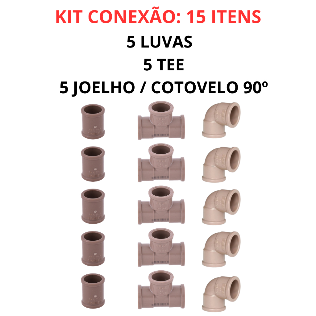 | Kit Instalação Conexões Hidráulicas PVC 25mm 3/4 Joelho Tee Luva Co... este produto | R$ 11,38 | 33% | 4.8/5 | 24 |
