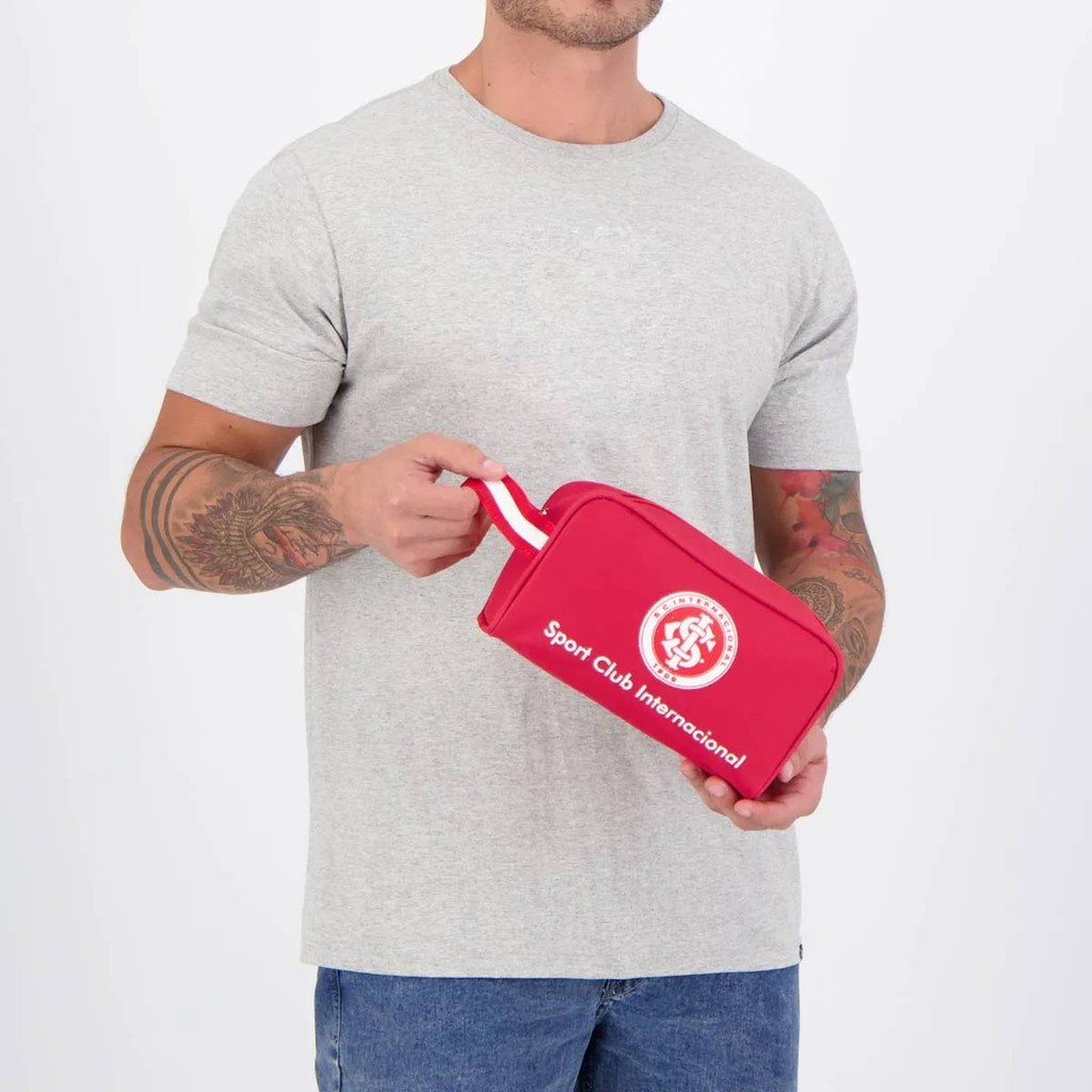 Necessaire Dimensões Aproximadas (A x L x C): 13 x 10 x 23 cm Composição: 65% PVC e 35% Poliéster Compartimento: Um principal amplo Cor predominante: Vermelha Peso aproximado: 150g Clube: Internacional Escudo: Estampado Origem: Nacional Bolso: Não Tamanho único Toalha Composição: 100% Algodão Cor Predominante: Vermelha Tamanho Único: 138 x 70 cm Peso Aproximado: 330g Clube: Internacional Origem: Nacional