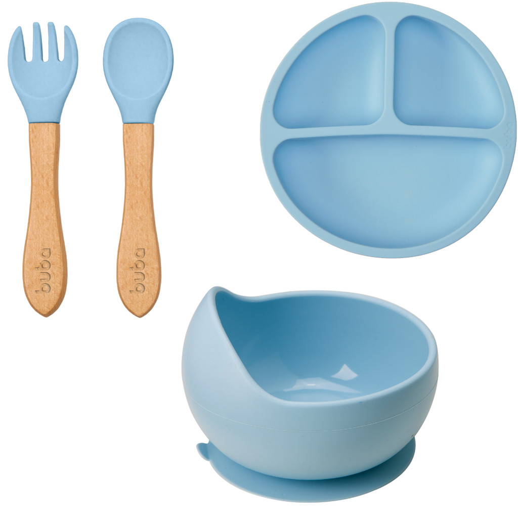 Kit Introdução Alimentar Silicone Buba 4 Peças Prato Divisórias Ventosa + Bowl Ventosa + Kit Talher