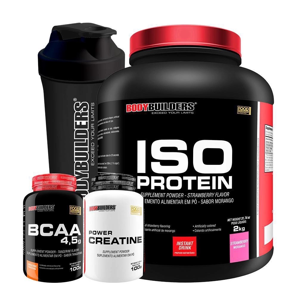 Kit Iso Whey Protein 2kg + Creatina 300g + Bcaa + Coqueteleira - Proteínas Isoladas - Bodybuilders