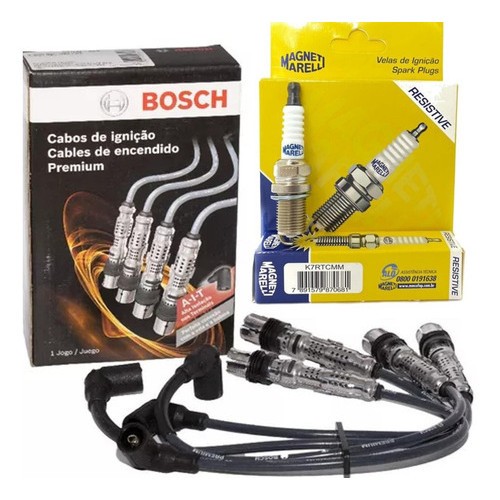 JOGO DE CABOS + VELAS DE IGNIÇÃO CONTEÚDO DA EMBALAGEM: Este anúncio contém: 01 (um) jogo de cabos de vela de ignição Código: F00099C599 / STVW599 original BOSCH; 01 (um) jogo de velas de ignição com 04 velas Código: K7RTCMM MARCA MAGNETI MARELLI Aplicável nos seguintes veículos: Veículo: Kombi; Fabricação: 02/2009, 2010, 2011, 2012, 2013, 2014; ANTES DE EFETUAR SUA COMPRA TIRE SUAS DUVIDAS NA ABA DE PERGUNTAS!!