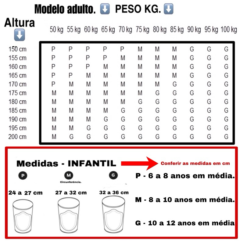 joelheira de ótima qualidade. 01 par de joelheira a elástica. tamanho P. recomendado para atletas de 1,50 até 1,65 tamanho M. recomendado para atletas de 1,66 até 1,80 tamanho G. recomendado para atletas a partir de 1,81 MEDIDAS EM CENTIMETROS INFANTIL P-21 A 24 CM M-25 A 30 CM G-31 A 33 CM MEIAO ADULTO 37 AO 43 MEIAO INFANTIL 28 AO 36