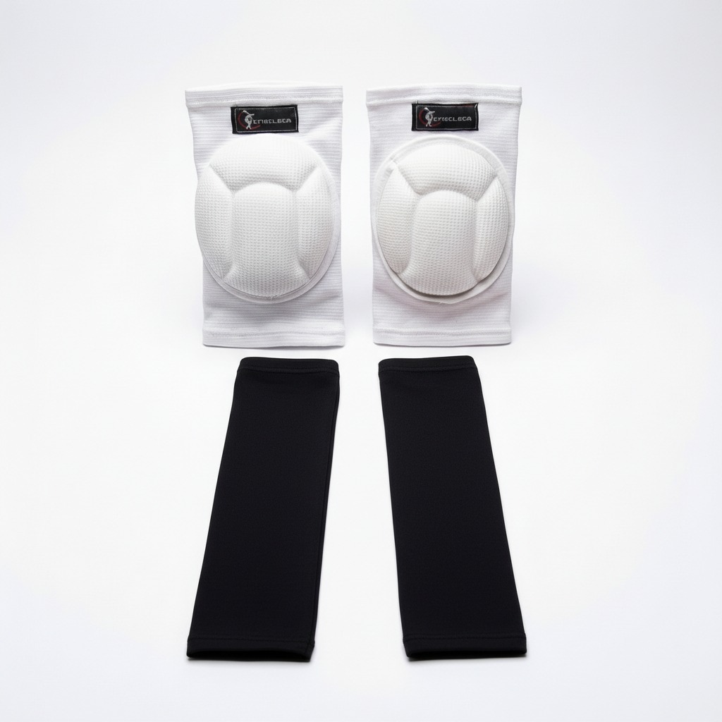 Kit Joelheira Vôlei Elástica branca + Manguito elástico Preto - par
