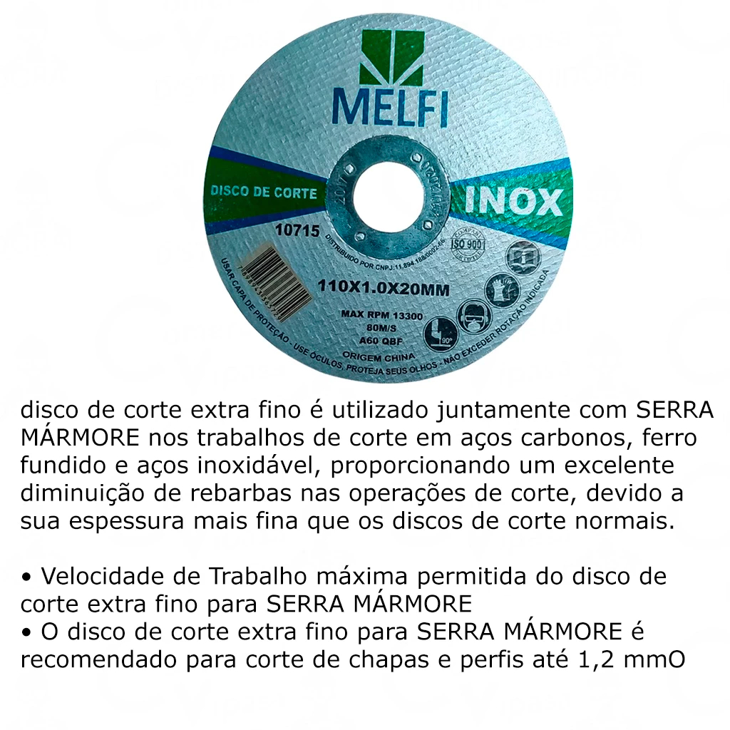 COMERCIAL VIPASA Distribuidora Kit Jogo 100 Discos De Corte Fino Inox 4.1/2 X 1,0mm Esmerilhadeira Corta Rápido Resistente 115mm Kit Jogo 100 Discos de Corte Fino para Inox 4.1/2 Pol x 1,2 mm – Esmerilhadeira – Corte Rápido e Resistente O Kit Jogo com 100 Discos de Corte Fino para Inox 4.1/2 pol. (115 mm) é a escolha ideal para profissionais que buscam desempenho, precisão e durabilidade em cortes de metais, principalmente aço inoxidável. Compatível com esmerilhadeiras de uso geral, esses discos proporcionam cortes rápidos e limpos, com mínima geração de rebarbas e calor. Fabricados com materiais abrasivos de alta qualidade e liga de resina reforçada com fibra de vidro, os discos oferecem excelente resistência mecânica e segurança durante o uso. Sua espessura fina de 1,2 mm é perfeita para cortes mais delicados, rápidos e com acabamento superior. Características do Produto Produto: Disco de corte fino para inox Aplicação: Corte de aço inox, metais ferrosos e não ferrosos Quantidade: Kit com 100 unidades Diâmetro externo: 115 mm (4.1/2 polegadas) Diâmetro do furo central: 22 mm Espessura: 1,2 mm Compatibilidade: Esmerilhadeiras angulares com furo de 22 mm Material: Óxido de alumínio abrasivo com resina reforçada Tipo de corte: Rápido, preciso e com baixa emissão de calor Indicado para: Profissionais da construção civil, serralherias, oficinas e uso geral em metalúrgicas Vantagens Alta durabilidade mesmo em trabalhos contínuos Menor desperdício de material por ser disco fino Corte limpo e com menos rebarba Rendimento superior por unidade Embalagem econômica com 100 peças para uso intensivo Recomendações de Uso Utilize sempre equipamentos de proteção individual (EPI) Instale corretamente na esmerilhadeira e respeite os limites de rotação Ideal para corte de tubos, chapas, perfis e barras de aço inox e metais em geral disco de corte inox 4.1/2, disco fino para esmerilhadeira, disco para cortar inox, disco abrasivo 115mm, kit 100 discos corte metal, disco corte rapido fino, disco 115x1.2x22mm, disco de corte profissional, corte inox sem rebarba, ferramenta para esmerilhadeira Kit 100 Discos Corte Fino Inox 4.1/2 x 1,2 mm Esmerilhadeira Disco Corte Inox 115 mm x 1,2 mm – Kit com 100 Unidades Jogo 100 Discos de Corte Fino para Inox Esmerilhadeira 4.1/2 Kit Econômico 100 Discos Corte Inox Fino 115 mm Profissional Disco 4.1/2 para Corte Rápido Inox – Kit com 100 Peças INFORMAÇÕES TÉCNICAS Diâmetro do disco: 115 mm Espessura: 1,2 mm Furo central: 22 mm Peso aproximado do kit: 6 a 7 kg (varia conforme lote) Largura x Profundidade x Altura (da embalagem): Aproximadamente 16 cm x 16 cm x 12 cm COMERCIAL VIPASA DISTRIBUIDORA.