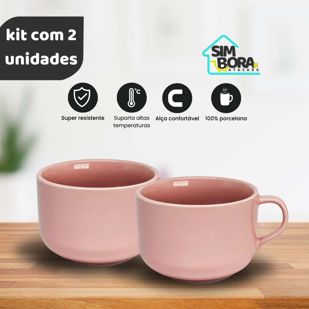 Kit Jogo 2 Canecas Jumbo Tigela Cumbuca 600ml Sopa Caldo Porção