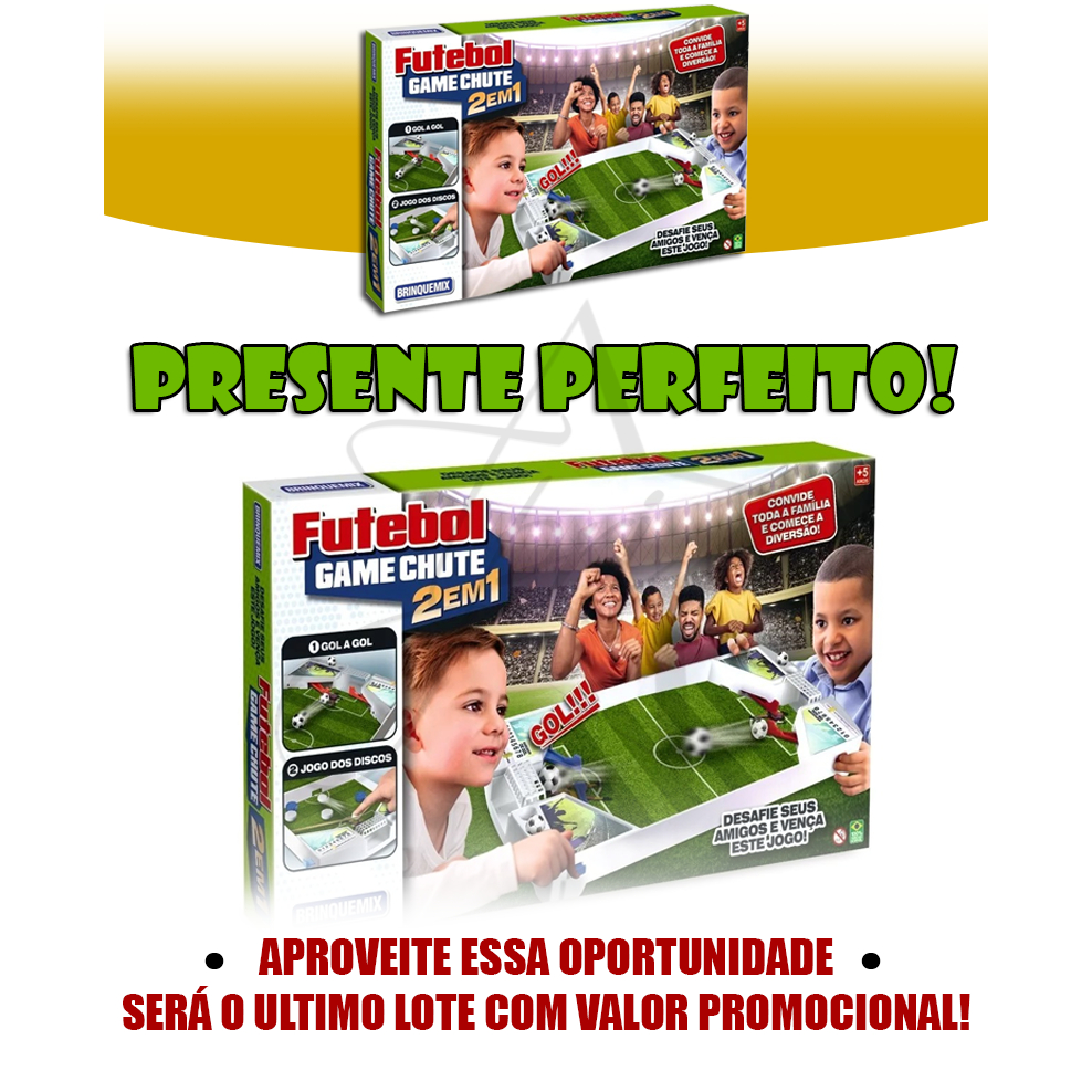 🎉 Transforme seus momentos em família em verdadeiras aventuras com o FUTEBOL GAME 2 EM 1! Este incrível brinquedo é a chave para momentos inesquecíveis entre pais e filhos, garantindo diversão sem limites. 🏆 Com apenas uma compra, leve para casa um kit de futebol de mesa que oferece não uma, mas duas experiências de jogo emocionantes: GOL A GOL e JOGO DE DISCOS. Prepare-se para criar memórias inesquecíveis com sua família! ❓ PERGUNTAS FREQUENTES! - 🏷 É certificado pelo Inmetro? R: Sim, temos o selo de certificação do Inmetro. - 🚚 Tem pronta entrega? R: SIM! Enviamos seu pedido no mesmo dia para compras feitas até as 16 horas em dias úteis. - 📜 Emite nota fiscal? R: Claro! Emitimos nota fiscal para garantir sua segurança e confiança. - 📦 Qual a forma de envio? R: Seu pedido será enviado por TRANSPORTADORA em até 24 horas após a confirmação da compra. - 🛡 Tem garantia? R: Sim! Garantimos a qualidade e durabilidade do nosso produto. ℹ INFORMAÇÕES DO PRODUTO: - 👶 Idade Recomendada: 04 anos + - 🛠 Material: Plástico PP - 📏 Dimensões do produto: 07cm x 32cm x 53cm (Altura x Largura x Comprimento/Profundidade) - 🔖 Produto original com selo do Inmetro. 🎁 ITENS INCLUSOS: - 01 Campo - 02 Redes - 02 Bolas - 10 Discos - 01 Travessão - 02 Elásticos 💼 Na nossa empresa, o cliente é prioridade. Comprometemo-nos a oferecer um atendimento excepcional, desde o pré até o pós-venda, com transparência, honestidade e qualidade. Estamos aqui para resolver qualquer questão e garantir sua total satisfação. Faça parte da nossa família de clientes satisfeitos! 🤝 Grande abraço e esperamos tê-lo como nosso cliente em breve! Assuntos relacionados: CRIANÇA, INFANTIL, GOL, FUTEBOL, GOLZINHO, TRAVES, TRAVE, BRINQUEDO, JOGO, UNIVERSAL, TRADICIONAL, PROMOÇÃO, FRETE GRATIS, PRONTA ENTREGA, ORIGINAL, MELHOR CUSTO BENEFÍCIO, MELHOR PREÇO, GARANTIA, TOP, BLACK FRIDAY, BLACKFRIDAY, LONGA DURAÇÃO.