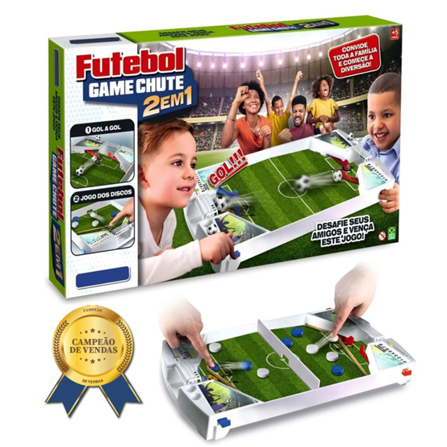 | KIT JOGO 2 EM 1 FUTEBOL DE BOTÃO TABULEIRO DE MESA INFANTIL GOL BRI... este produto | R$ 72,90 | 10% | 5.0/5 | — |
