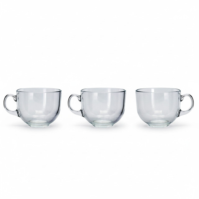 Kit Jogo 3 Canecas Jumbo Vidro 450ml Transparente Leite Chá Cereal Chocolate Quente Design Clean Tuut