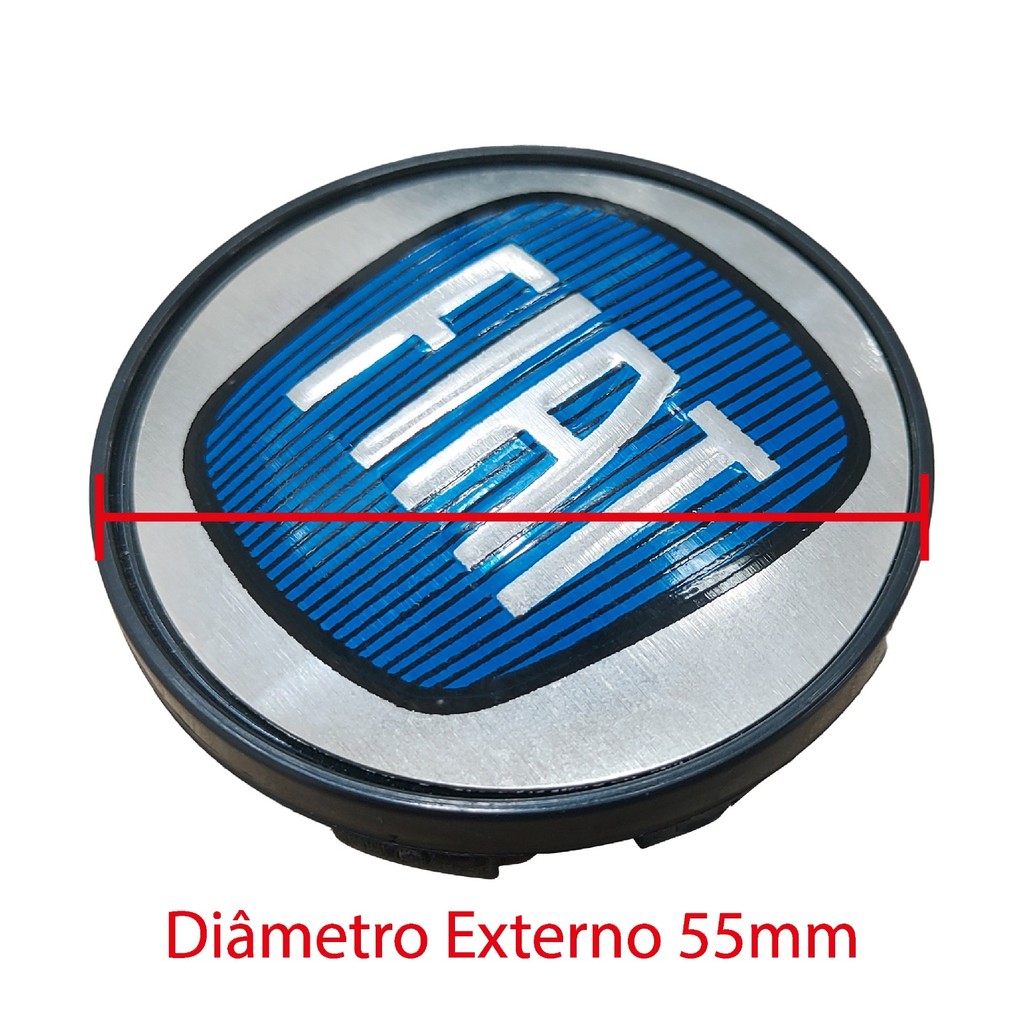 Kit Jogo 4 Calotinhas Miolo Centro de Roda Fiat Azul 55mm Roda de Liga Leve