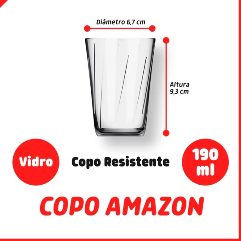 | Kit Jogo 6 Copos de Vidro 190ml Amazon Nadir este produto | R$ 11,00 | 23% | 5.0/5 | 22 |