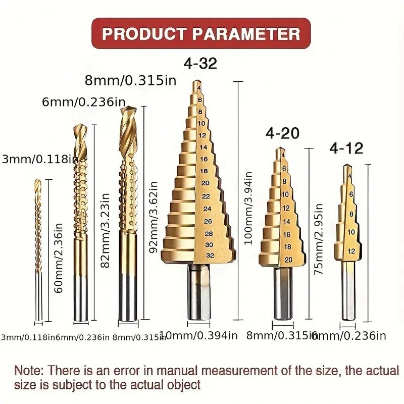 Kit Jogo 6 Peças Broca Escalonada Titânio 3-12 4-12 -20mm Brocas Hexagonais Cônicas