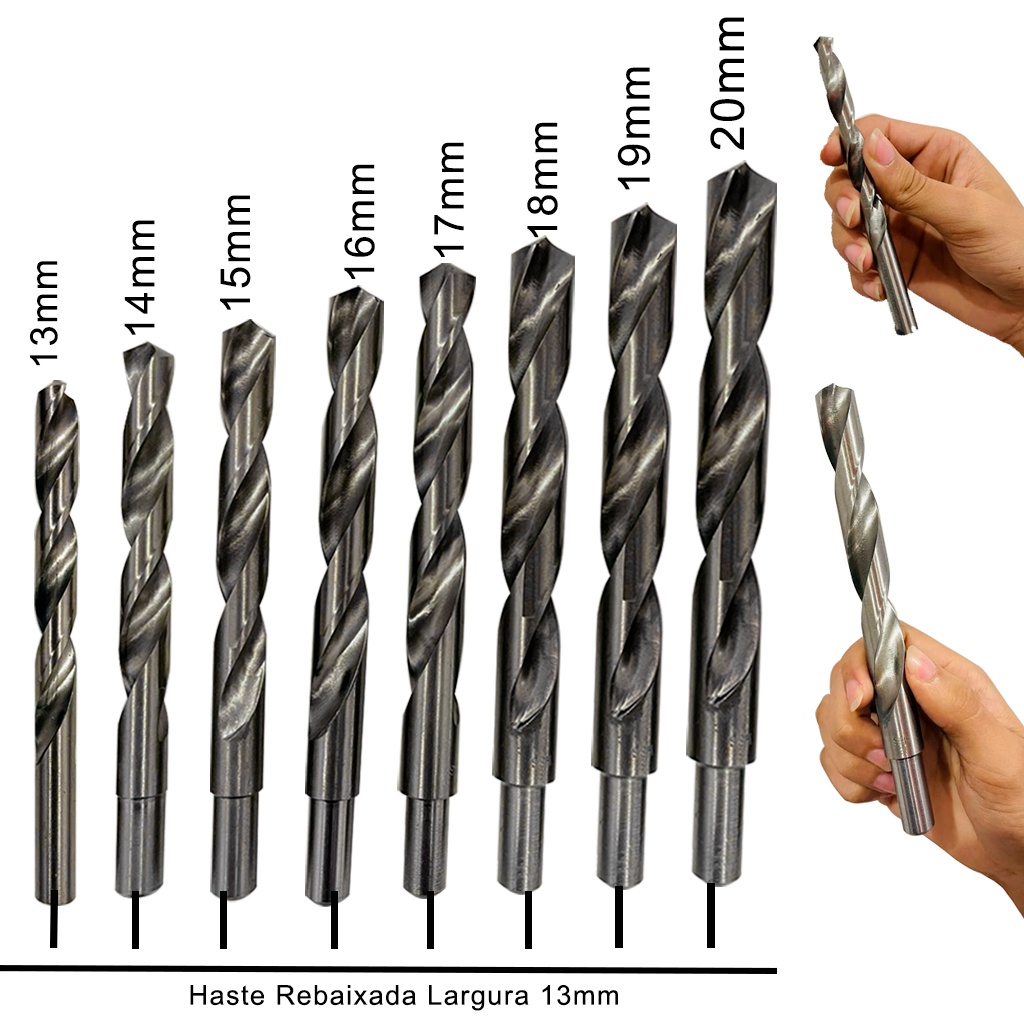 Kit Jogo 8 Brocas Aço Rápido Para Metal 13,14,15,16,17,18,19,20mm Haste Rebaixada Profissional - MTX