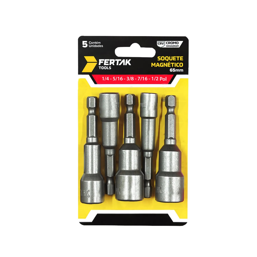 Comercial Vipasa Distribuidora KIT COM 5 SOQUETES MAGNETICOS PARA PARAFUSADEIRA Marca: Fertak Encaixe em 1/4" Medidas: 3/8 POL Produto de ótima qualidade para uso profissional Produzido em Aco Cromo Vanádio Próprio para Parafusadeiras A FERTAK TOOLS E UMA EMPRESA ESPECIALIZADA EM FERRAMENTAS PROFISSIONAIS, OFERECENDO O MELHOR EM TODA A LINHA DE PRODUTOS! Comercial Vipasa Distribuidora