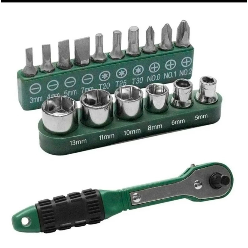 | Kit Jogo Chave Catraca Reversível 1/4 Soquetes Com Bits 17 Peças Mi... este produto | R$ 25,99 | 13% | 4.6/5 | 7 |
