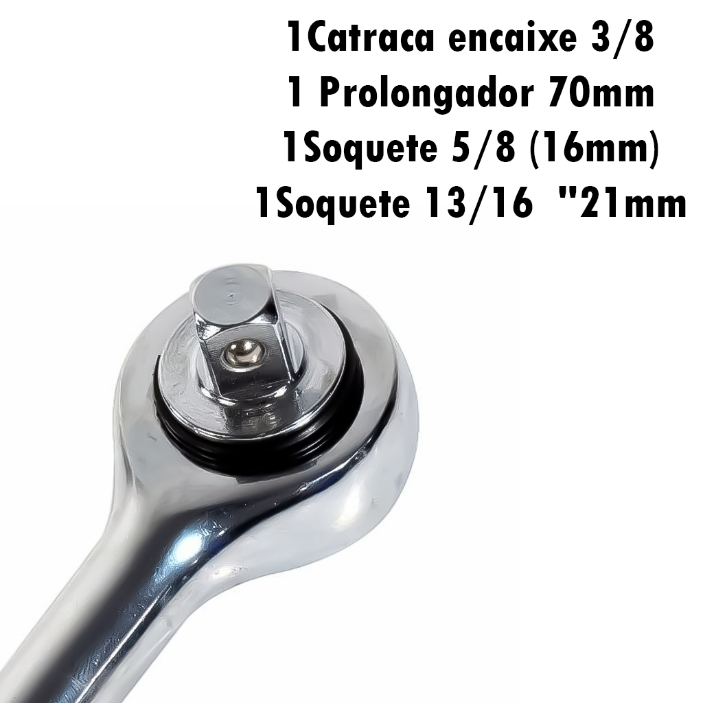Kit Jogo Chave De Vela Com Catraca Reversível 3/8Pol. 4 Peças Soquetes Ferro Fundido