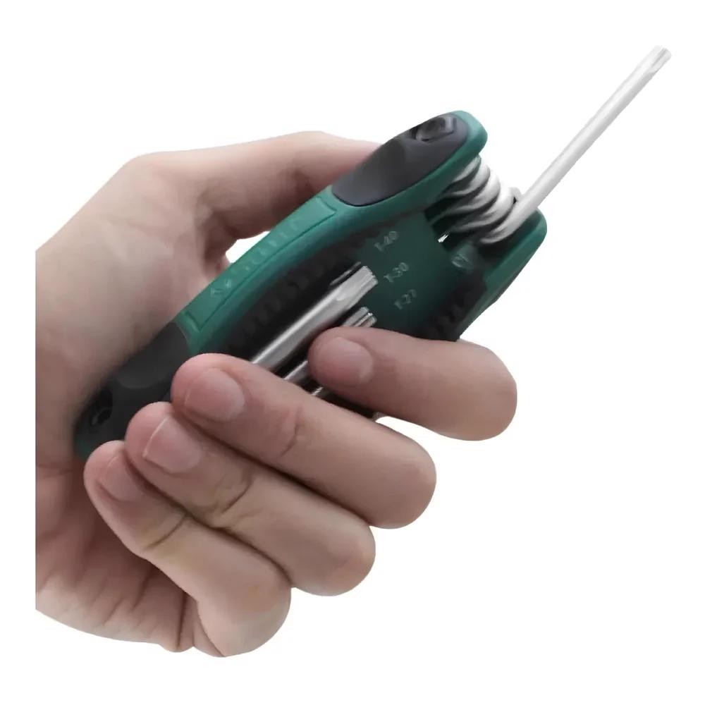 Kit Jogo Chave TORX Tipo Canivete 8 Peças SATA ST09123SJ Em Aço Cr-V Cromo Vanádio T9 - T40 Original