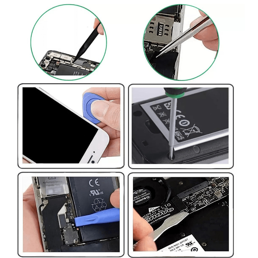 Descrição do Kit de Chaves de Precisão de 16 Peças: O Kit de Chaves de Precisão de 16 Peças é uma ferramenta essencial para quem trabalha com eletrônicos, dispositivos móveis e outros equipamentos delicados que requerem manutenção ou reparo com precisão. Composto por oito chaves de precisão, duas pinças, duas espátulas de plástico, dois triângulos de plástico e dois estiletes, este conjunto versátil atende às necessidades de tarefas minuciosas e delicadas. Conteúdo da Embalagem: 8 Chaves de precisão: Essas chaves possuem diferentes formatos e tamanhos de pontas para atender a diversas necessidades de parafusos e fixadores em dispositivos eletrônicos e dispositivos móveis. 1x T5 hexalobular socket 1x T4 hexalobular socket 1x T2 hexalobular socket 1x Fenda 2.0 1x 2.0 Phillips 1x 1.5 Phillips 1x 0.8 pentalobe (compatível com dispositivos iPhone 4, 4S, 5, 5C, 5S, 6, 6 Plus, 6S e 6S Plus) 1x 0.6 Y (compatível com dispositivos iPhone 4, 4S, 5, 5C, 5S, 6, 6 Plus, 6S e 6S Plus) 1 Pinça Reta: Ideal para a manipulação cuidadosa de pequenos componentes eletrônicos, como chips e resistores, permitindo um manuseio mais preciso. 1 Pinça Curva: Projetada para alcançar áreas de difícil acesso, a pinça curva é útil ao trabalhar em espaços apertados, garantindo a segurança dos componentes durante a montagem ou desmontagem. 2 Espátulas de plástico: As espátulas de plástico são excelentes para abrir dispositivos eletrônicos sem danificar as carcaças ou componentes internos, facilitando a remoção de telas ou capas. 2 Triângulos de plástico: Os triângulos de plástico são úteis para abrir com segurança dispositivos eletrônicos selados, como smartphones ou tablets, sem riscar ou danificar os acabamentos externos. 2 Estiletes: Os estiletes são ferramentas precisas para aplicação de adesivos, separação de componentes e outras tarefas delicadas que requerem um toque mais cuidadoso. Este conjunto de ferramentas de alta qualidade prepara você para realizar manutenções, reparos e modificações em uma ampla variedade de dispositivos eletrônicos e móveis, assegurando um trabalho preciso e seguro. O kit é compacto e portátil, facilitando o transporte e armazenamento de todas as peças, tornando-o indispensável para técnicos, entusiastas de eletrônicos e qualquer pessoa que precise lidar com dispositivos sensíveis.