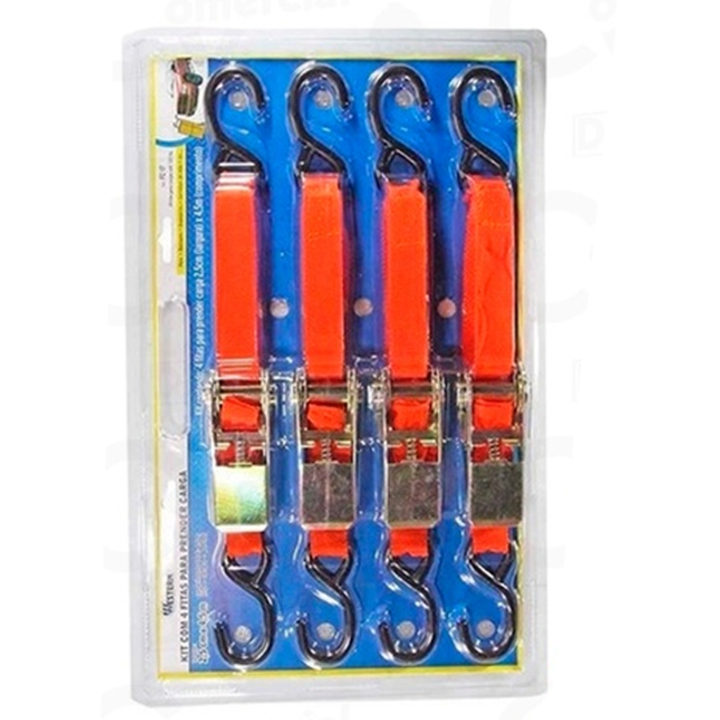 Kit Jogo Cinta Fita Catraca Para Amarração De Carga 4,5mX2,5cm 4 Peças Tração Catraca 120Kg
