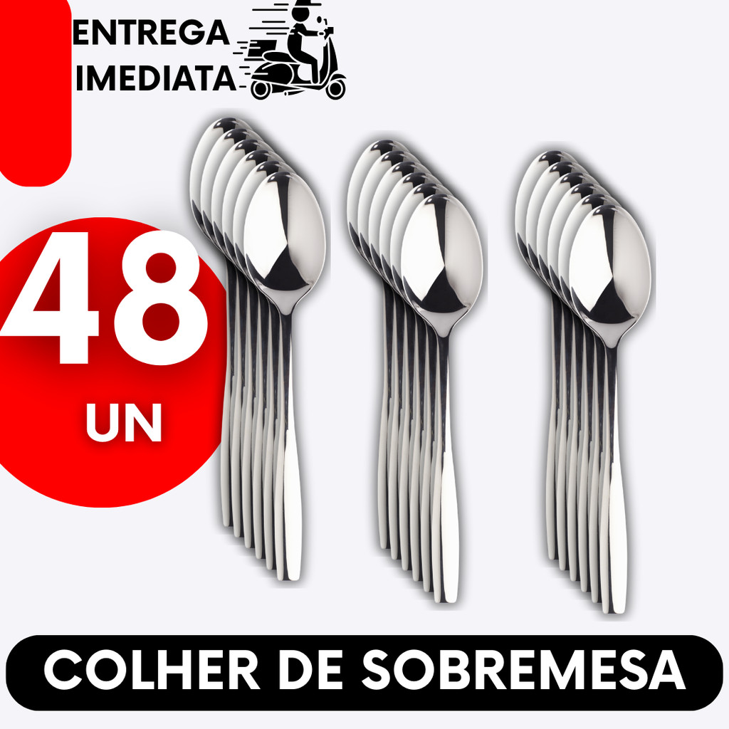 Kit Jogo Colher Sobremesa 48 Unidades Inox Resiste Alta Qualidade Tamanho Ideal Para Uso em Buffet Restaurantes