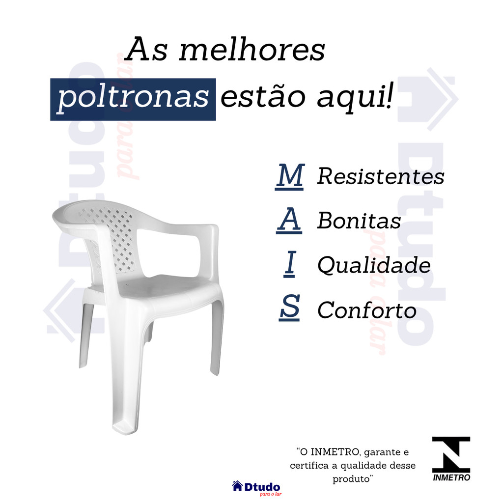 💺✨ Poltrona de Luxo – Conforto, Elegância e Resistência em um só produto! ✨💎 Transforme qualquer ambiente com a Poltrona de Luxo, o equilíbrio perfeito entre design sofisticado, conforto absoluto e durabilidade incomparável! Ideal para quem busca praticidade sem abrir mão do estilo, ela é feita em polipropileno reforçado, garantindo robustez e longa vida útil tanto em áreas internas quanto externas. 🌟 Principais vantagens: 💪 Super resistente: suporta até 182 kg, oferecendo segurança e firmeza para todos os usuários. 🪑 Design ergonômico: linhas suaves e encosto anatômico proporcionam conforto prolongado em qualquer ocasião. 🧺 Empilhável: fácil de armazenar e perfeita para ambientes com pouco espaço. ☀️ Material reforçado: polipropileno de alta qualidade, resistente a impactos e ao sol, ideal para uso constante. ✨ Fácil de limpar: basta um pano úmido para mantê-la sempre impecável e com aparência de nova. 🏡 Versátil e elegante: perfeita para salas, varandas, jardins, cafés, restaurantes, eventos e áreas externas. 📏 Dimensões aproximadas: Altura: 75 cm Largura: 57 cm Comprimento: 45 cm Capacidade: até 182 kg 💬 Por que escolher a Poltrona de Luxo? Porque ela une beleza, resistência e conforto, elevando o visual do seu espaço e oferecendo uma experiência de uso única. Seja para relaxar, receber convidados ou compor a decoração, essa poltrona é sinônimo de qualidade e bom gosto! ✨💺