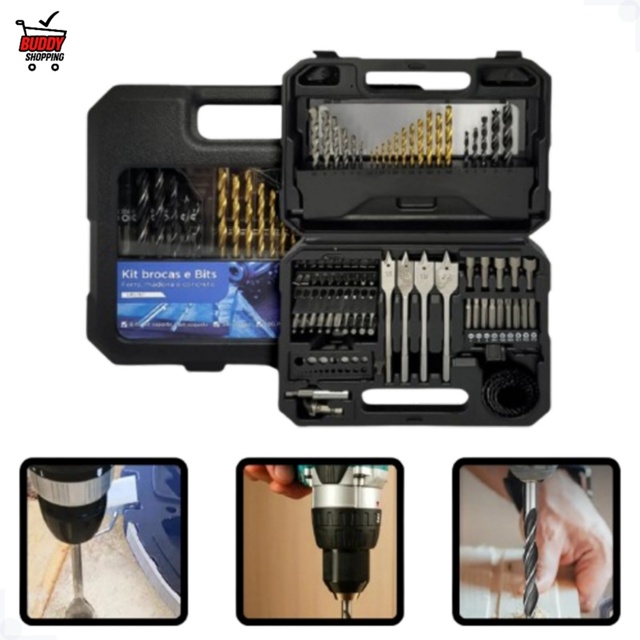 | Kit Jogo De Brocas E Bits 100pçs Madeira , Concreto E Ferro Luatek ... este produto | R$ 143,99 | 71% | 5.0/5 | — |