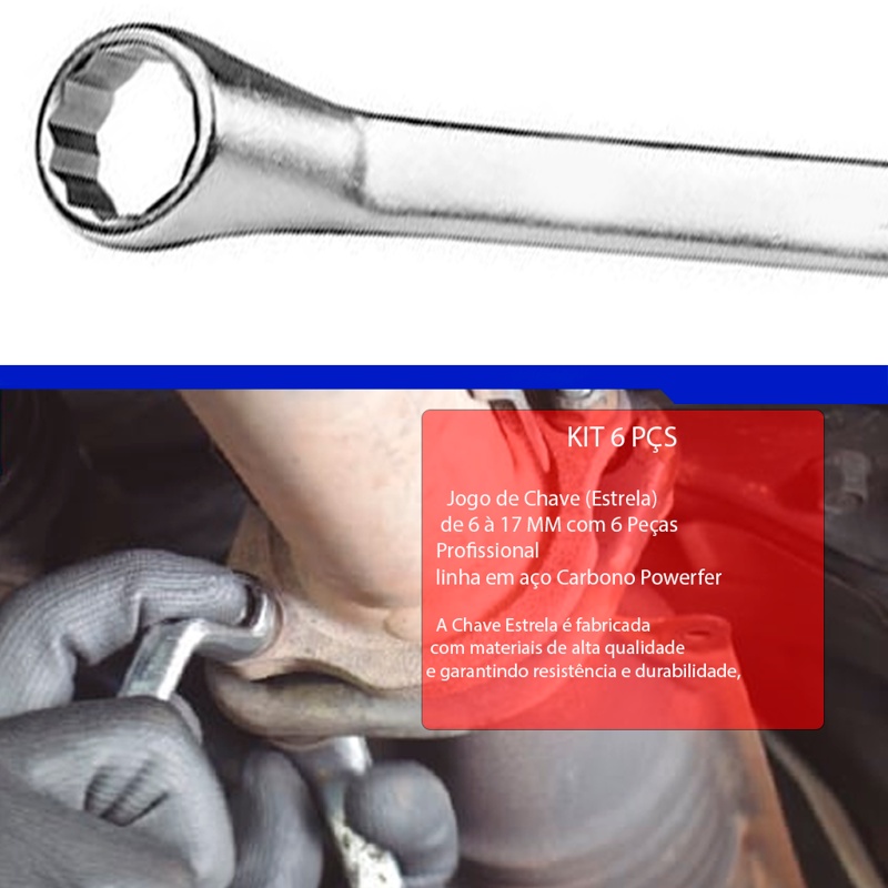 Kit jogo De Chaves Boca Estrela Aço Forjado 6 Peças 6 - 17mm Profissional Resistente Carbono