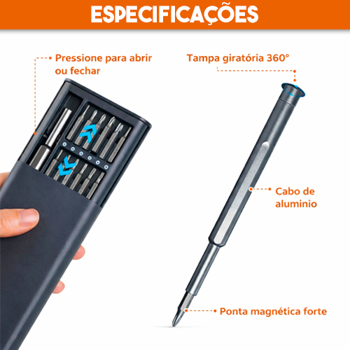 Kit Jogo de Ferramenta Chave Magnética Precisão 24 Peças Compatível Celular e Notebook