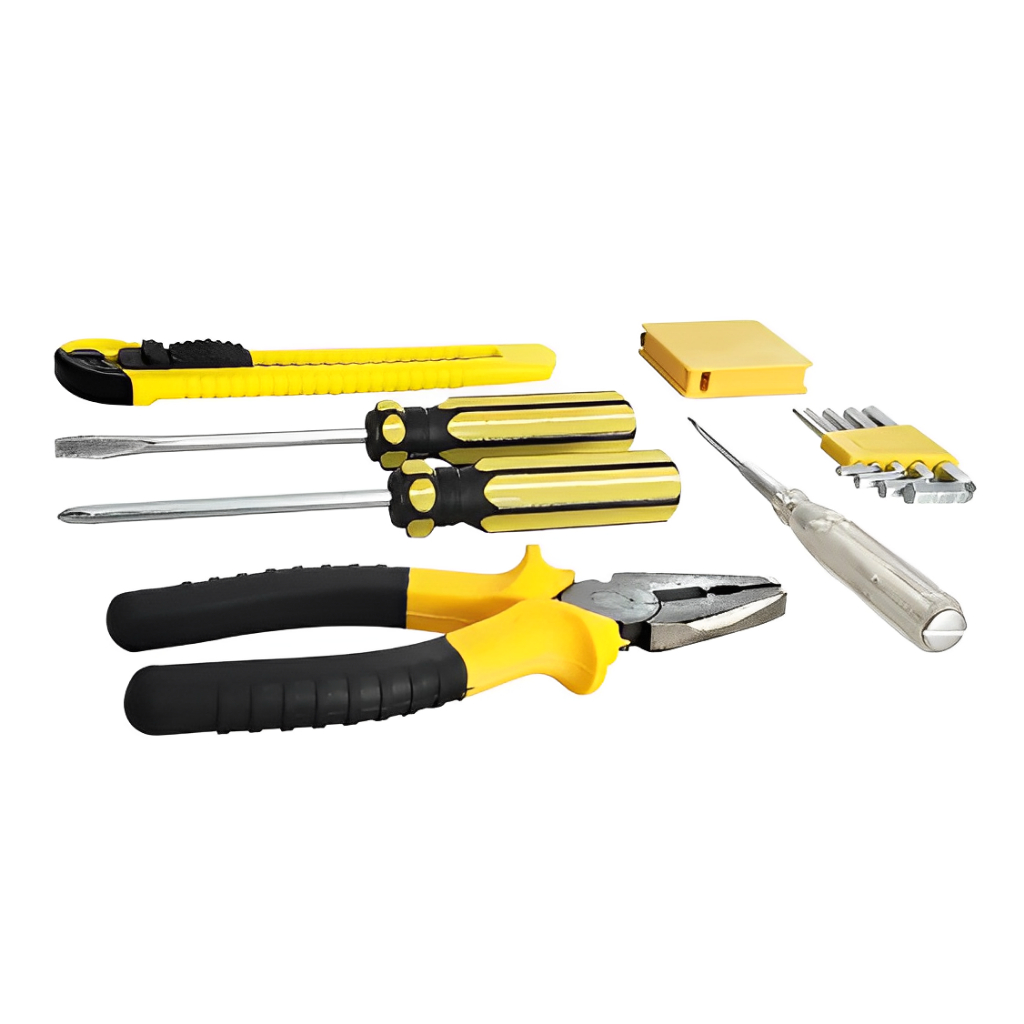 Nada nos faz sentir mais maduros do que ter um conjunto de ferramentas em casa. As ferramentas de titânio simplificam inúmeras tarefas de reparação e manutenção no nosso dia a dia! Composto por 11 componentes de aço carbono e uma caixa de ferramentas portátil, este kit de ferramentas oferece resistência e durabilidade, tornando-o ideal para diversos trabalhos e manutenção. Modelo: conjunto de ferramentas de 12 peças para serviços pesados Composição: aço carbono Dimensões e peso Dimensões e peso equivalem a 1 unidade. Conjunto de ferramentas pesadas com 12 peças Altura: 4 cm Comprimento: 20cm Largura: 14cm Peso: 425g Conteúdo da embalagem 1 pasta 5 chaves Allen (2 a 6 mm) 1 fita métrica (1m) 1 chave de teste 1 caneta 1 alicate universal (6”) 1 chave de fenda Phillips 1 chave de fenda
