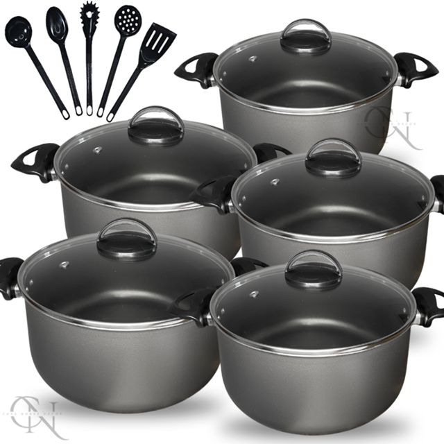 Kit Jogo de Panelas 10 peças Caçarolas Antiaderente Teflon com Tampa Vidro e Utensílios